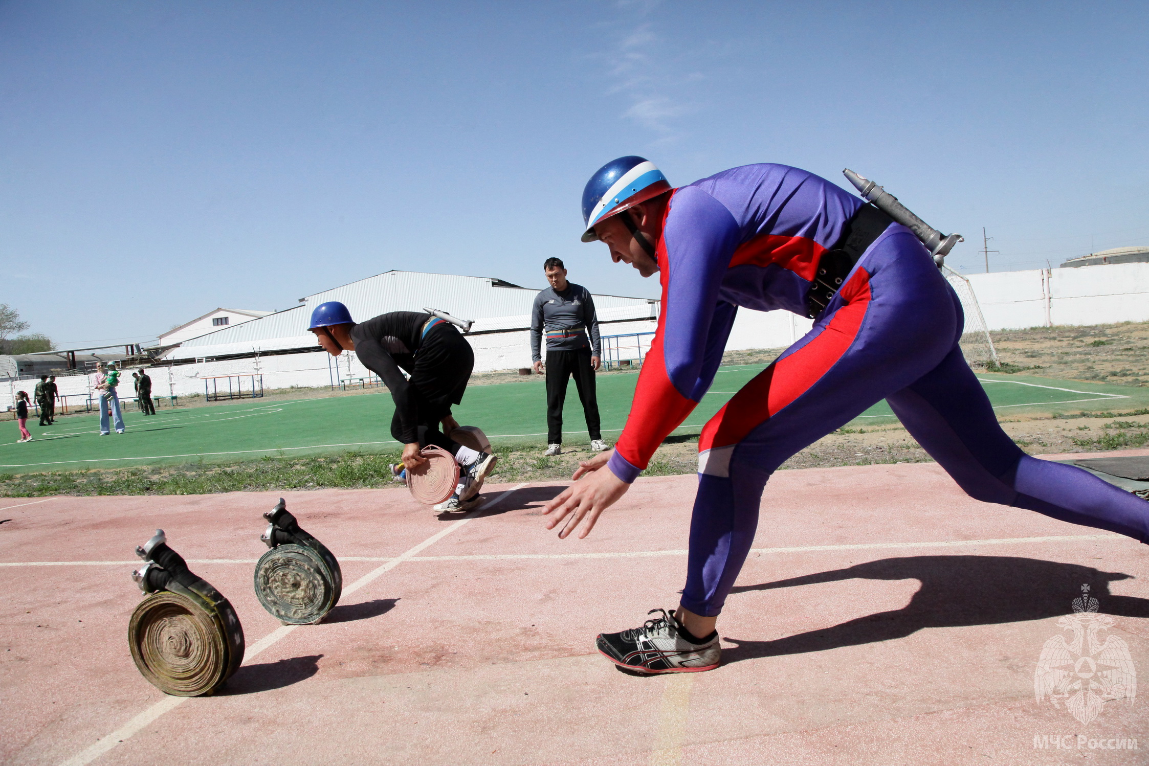 За звание лучших в профессиональном спорте пожарных в этот раз боролись представители 5 команд. Программа соревнований включала в себя три вида состязаний. В преодолении 100-метровой полосы с препятствиями лучшим стал Жандос Атабаев, начальник караула из специальной пожарной части № 4 Специального управления ФПС № 70 МЧС России. На преодоление препятствий «стометровки» ему понадобилось 18,32 секунды. На втором месте его коллега из СПСЧ № 1 - Роман Коверда, показавший результат 19,19 секунды. На третьем месте Сабит Тураков из пожарной части № 8 МЧС Республики Казахстан.