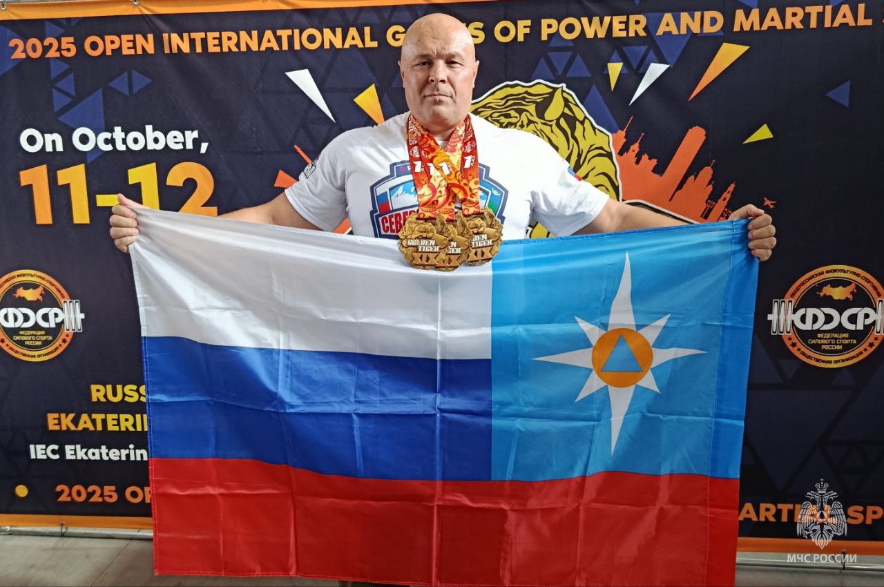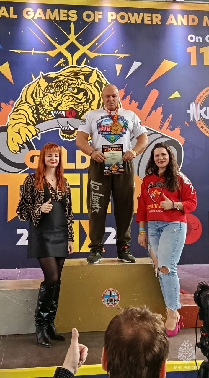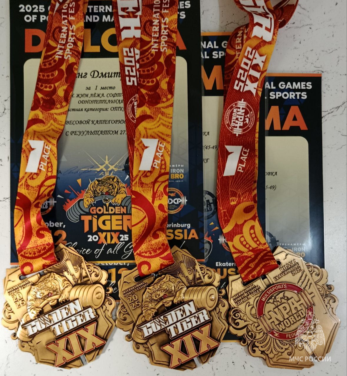 Сотрудник ФГКУ «Специальное управление ФПС № 70 МЧС России» Дмитрий Цанг успешно выступил в финале Чемпионата мира в тяжелой весовой категории (до 140 кг), завоевав три высшие награды: