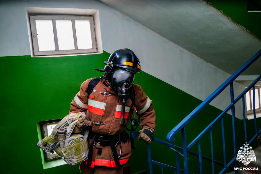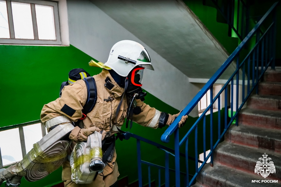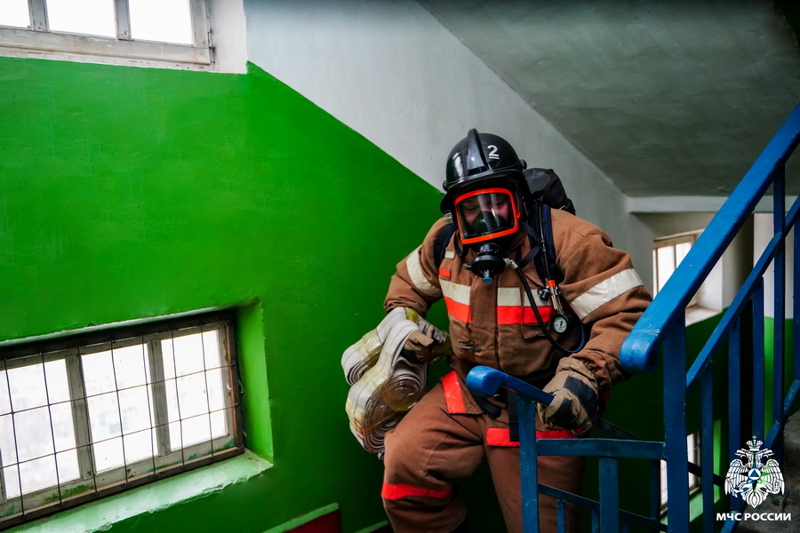 Сегодня прошли ежегодные соревнования среди сотрудников Специального управления ФПС № 70 МЧС России по вертикальному (скоростному) подъёму на 9-й этаж.