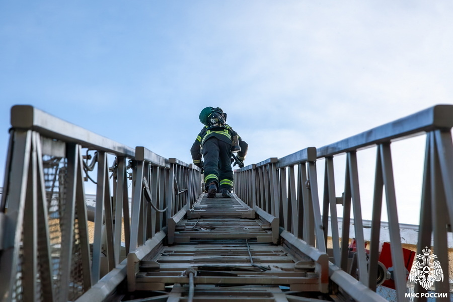 -эвакуация личного состава пожарной охраны с кровли при помощи автолестницы и самоспасения с верхних этажей с использованием специальных технических средств;