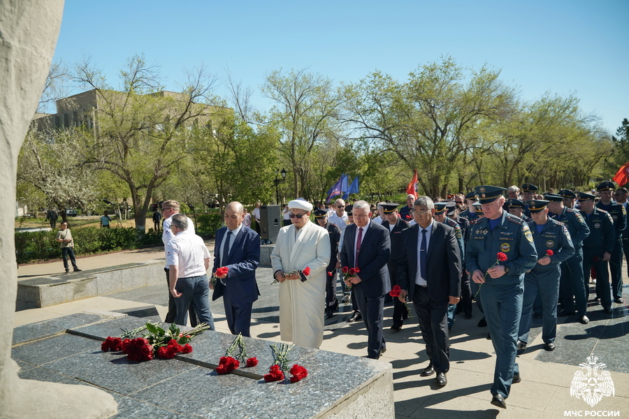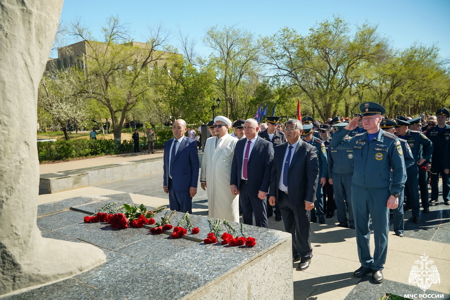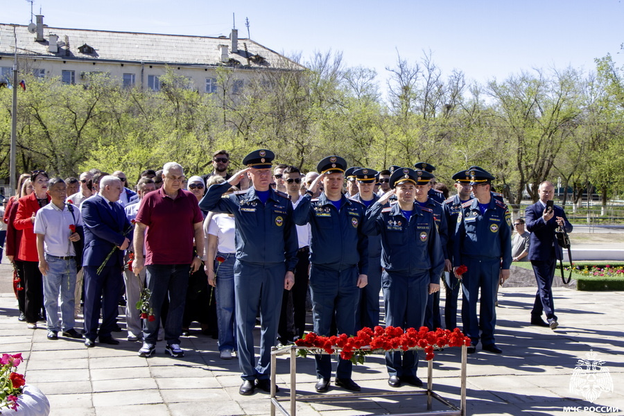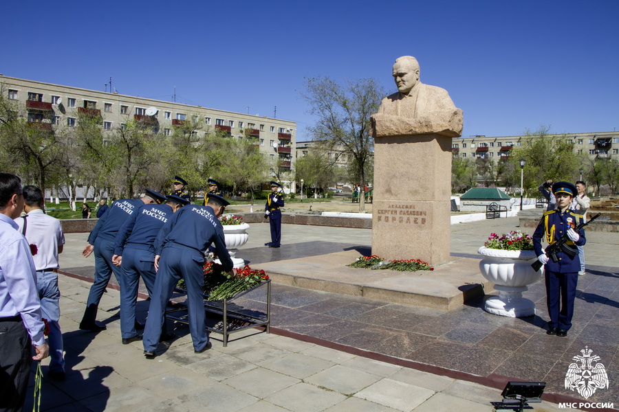 Утро началось с традиционных митингов у двух знаковых каждому жителю Байконура монументов. Первым — у памятника Юрию Гагарину в одноимённом сквере. Сюда пришли руководители города и космодрома, сотрудники ФГКУ «Специальное управление ФПС № 70 МЧС России», УМВД России на комплексе «Байконур», представители духовенства, городских предприятий, учащиеся общеобразовательных организаций, жители и гости города.